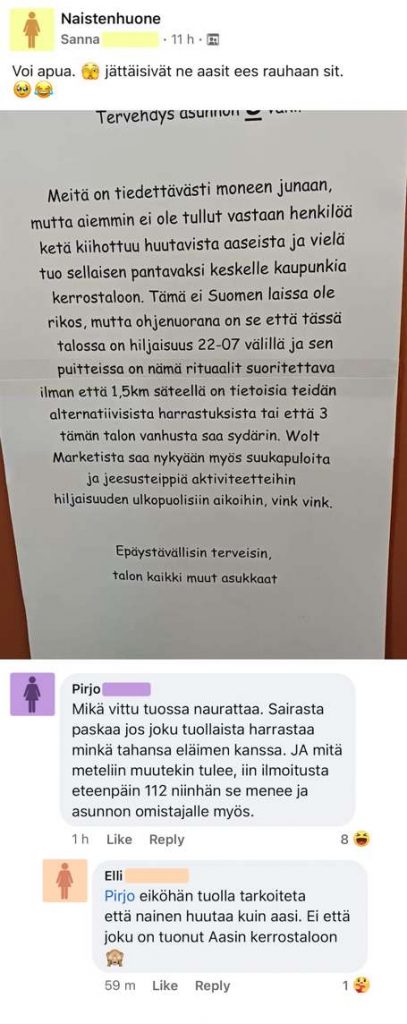 Eräs nainen otti julkaisun hieman liian kirjaimellisesti, sillä hän luuli, että joku hässii oikeasti aasin kanssa kerrostalossa.