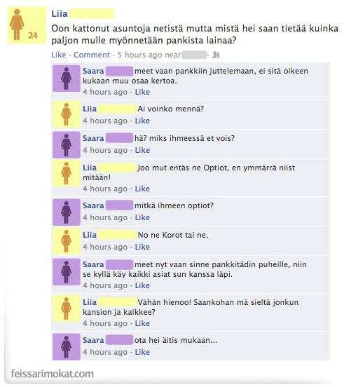 - Feissarimokat: Liia haluaa pankkilainan – saa ventovieraalta huvittavan neuvon