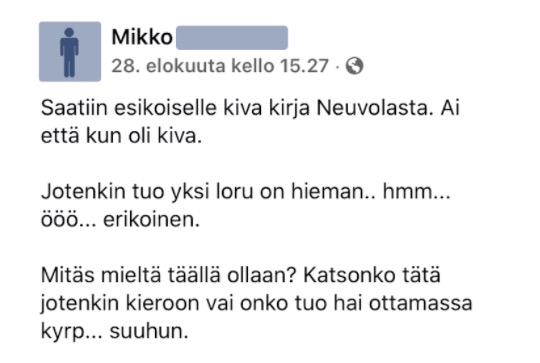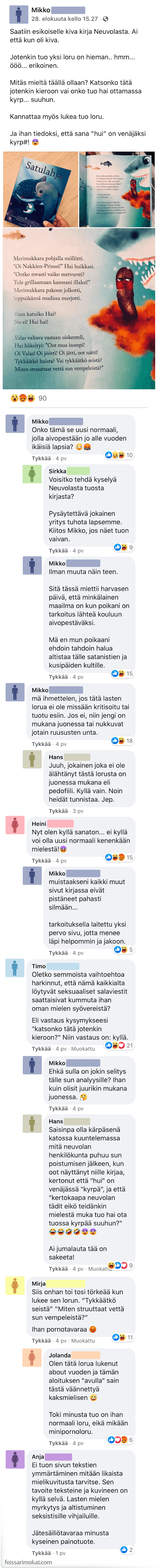 Mikko oli saanut esikoiselleen kirjan neuvolasta ja järkyttyi huomatessaan, kuinka pervoja viestejä kirja sisälsi. Hän kirjoitti tämän seurauksena vihaisen päivityksen, jossa kirjan sisältöä avattiin tarkemmin.