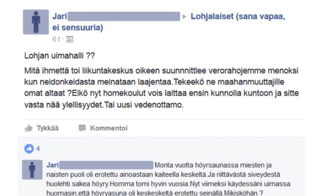 Feissarimokat: lohjalaisen höyrysaunan väliin tuli seinä – tirkistelijä pahoitti mielensä