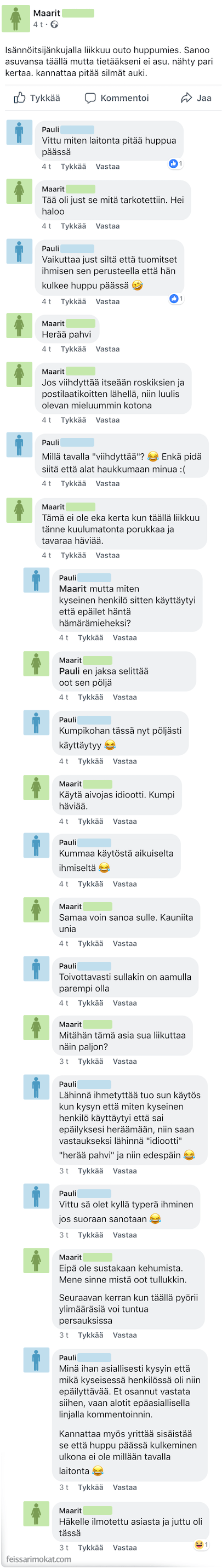 Minusta tuntuu että Maarit halusi vain huomiota ja suuttui siitä, kun Pauli tuli kritisoimaan hänen julkaisuaan.