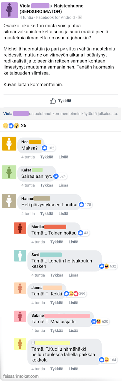 Feissarimokat: miehen silmät muuttuivat keltaiseksi – Viola kysyy neuvoa ja apua muilta naisilta
