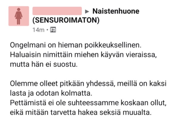 Feissarimokat: ”mies ei suostu pettämään” – naisen avautuminen herättää kysymyksiä
