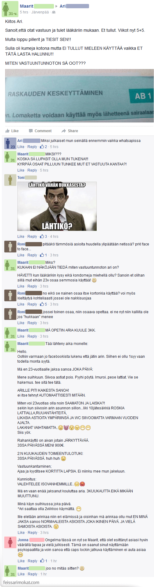 Feissarimokat: mies ei tullut lääkäriin, eikä käyttänyt kumia – nainen avautuu