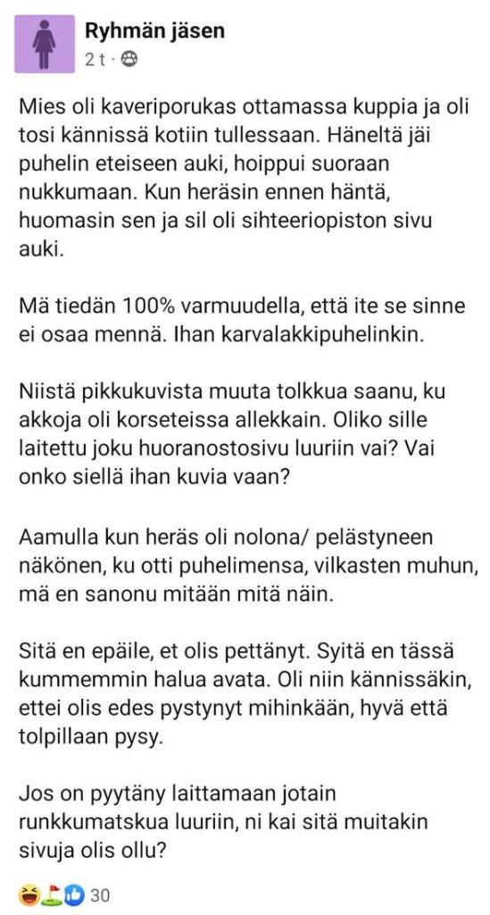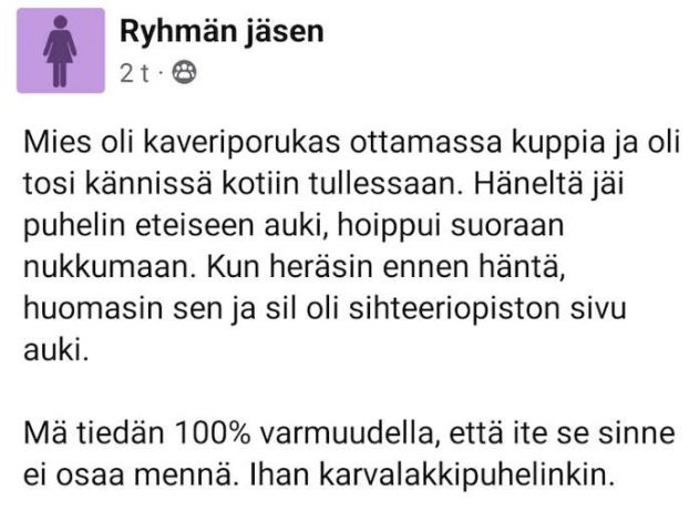 Suomalaismies tuli juopuneena kotiin ja unohti puhelimensa auki – jäi kiinni