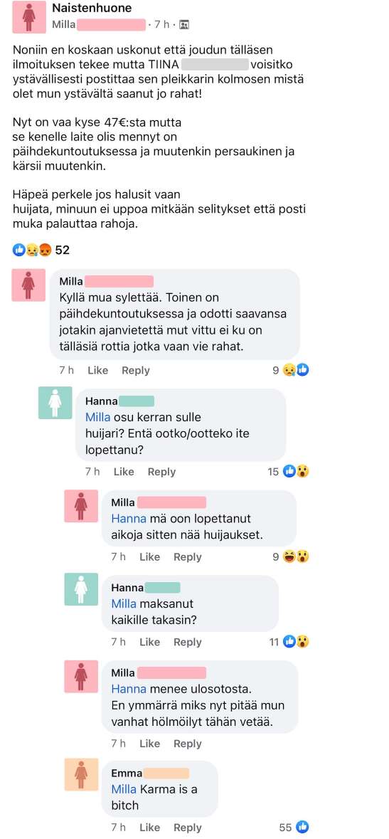 Hetken kuluttua kävi ilmi, että Milla on harrastanut samanlaisia huijauksia. Hän tosin kertoi lopettaneensa huijaukset jo aikoja sitten.