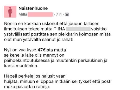 Milla avautui ikävästä ongelmasta, sillä hänen ystävänsä oli ostanut eräältä toiselta henkilöltä Ps3 -pelikonsolin, muttei ollut koskaan saanut tuotetta.