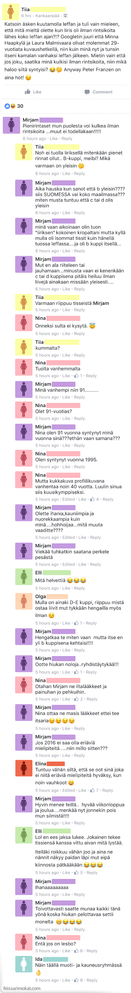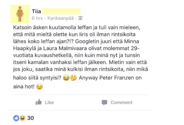 Feissarimokat: Mirjamin mukaan vain pienirintaiset naiset saavat kulkea ilman rintsikoita