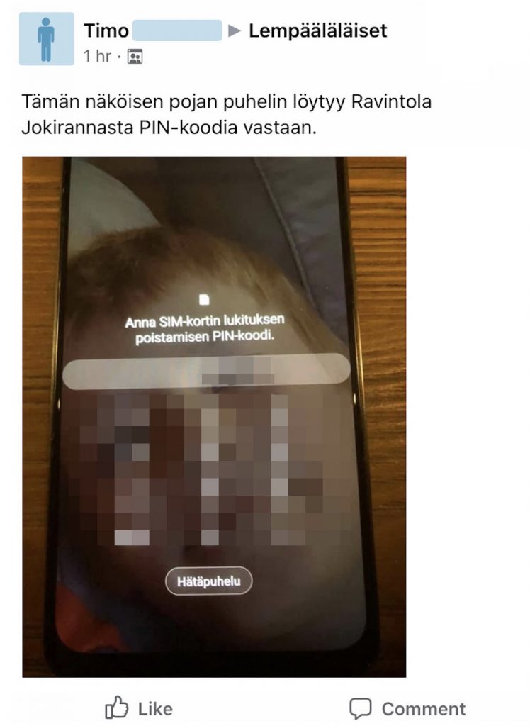 Lempääläisten some-ryhmässä käytiin hurja keskustelu, kun Timo julkaisi kuvan löytämästään puhelimesta. Ravintolassa syömässä ollut suomalaismies kertoi antavansa puhelimen sen alkuperäiselle omistajalle PIN-koodia vastaan.
