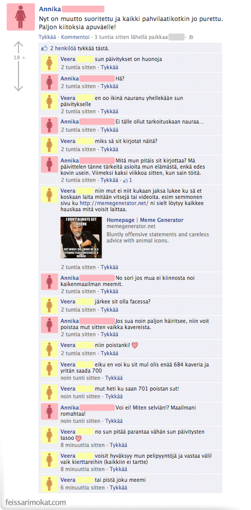 Feissarimokat: nainen arvostelee ystävänsä päivityksiä – ”sun päivitykset on huonoja”