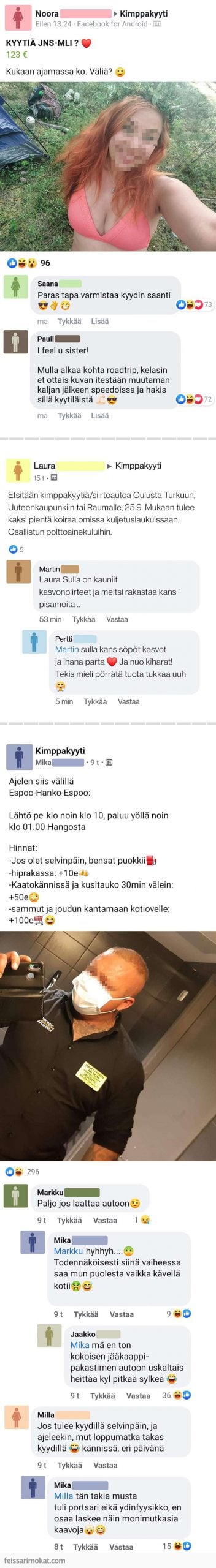 Feissarimokat.com kokosi kolme kimppakyyteihin liittyvää julkaisua, jotka olivat omasta mielestäni huvittavia.