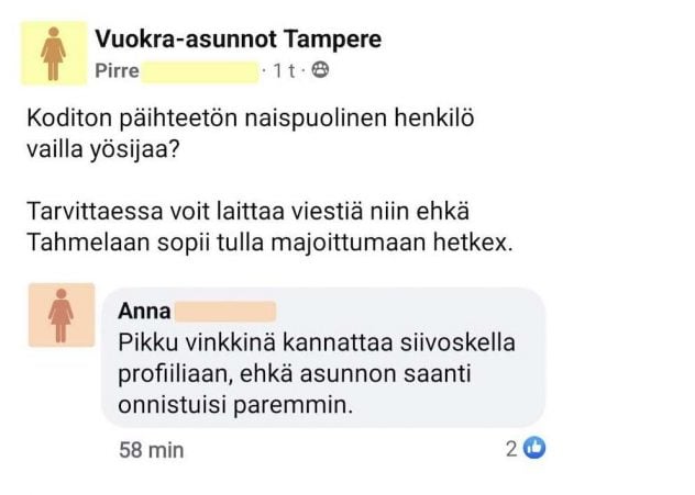 Feissarimokat: nainen etsii päihteetöntä vuokralaista – repii pelihousunsa yhdestä kommentista