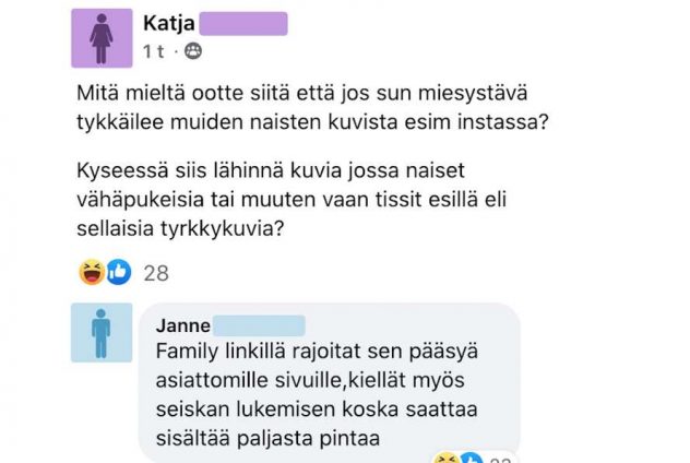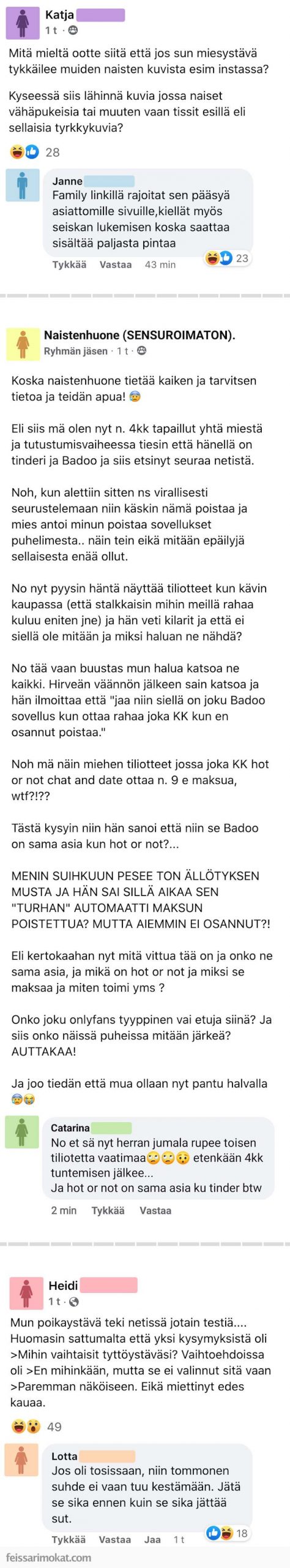 Oheiseen julkaisuun mahtuu myös pari muuta keskustelua, joissa pohditaan poikaystävien uskollisuutta. Eräs mies oli nimittäin tykkäillyt vähäpukeisten naisten kuvista Instagramissa.