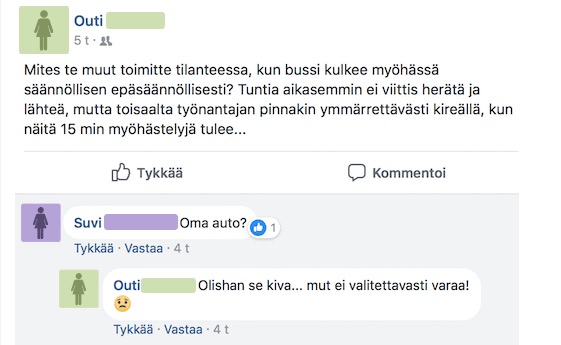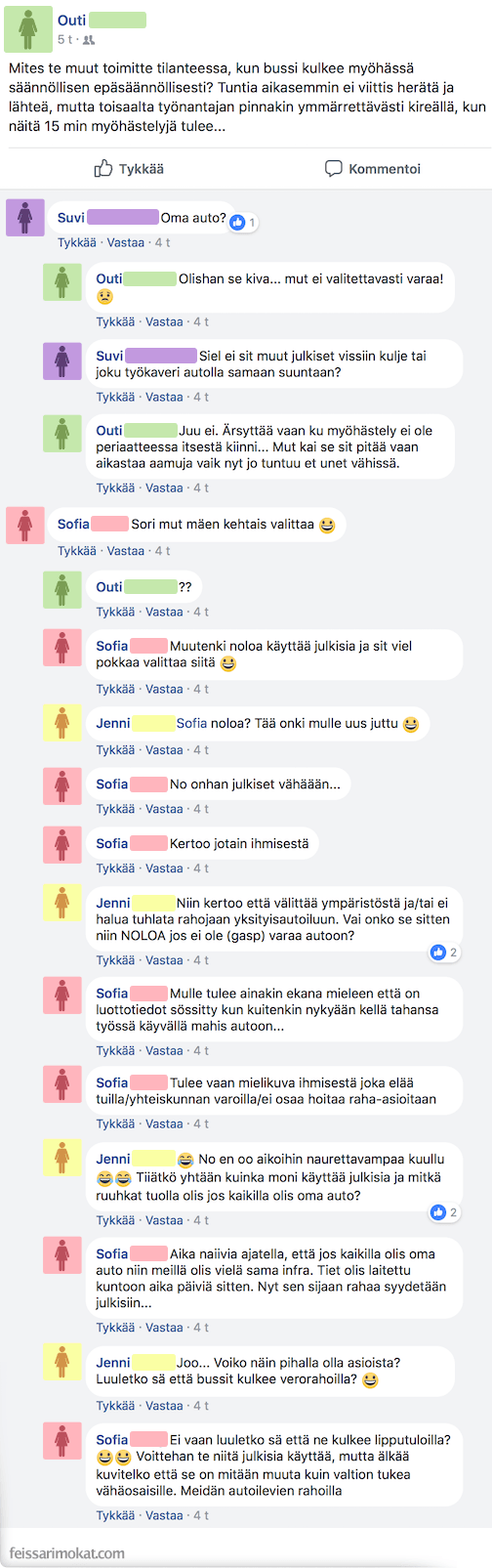 Feissarimokat: nainen haukkuu julkista liikennettä – syy on monen mielestä kummallinen