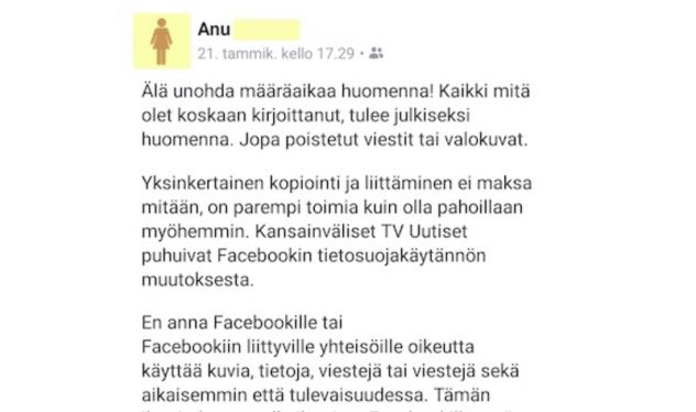 Facebookissa kiertää aika ajoin viestejä, jotka ”on pakko” kopioida omalle seinälle.