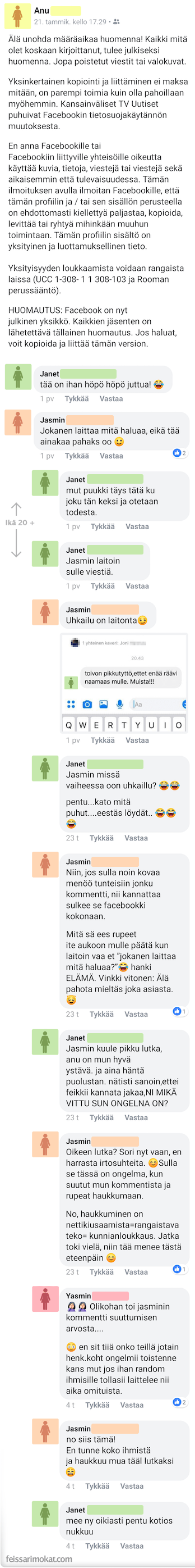 Feissarimokat: nainen jakaa höpöhöpö-juttuja somessa ja saa muilta lokaa niskaan