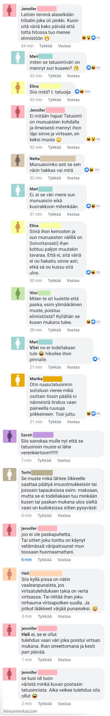 Feissarimokat: nainen otti pinkin tatuoinnin – väittää nyt, että muste imeytyi virtsarakkoon