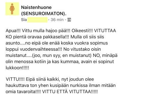 Feissarimokat: nainen unohti vuokrasopimuksen päättymisen – ”menin kotiin ja lukot oli vaihdettu”
