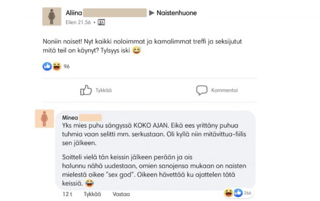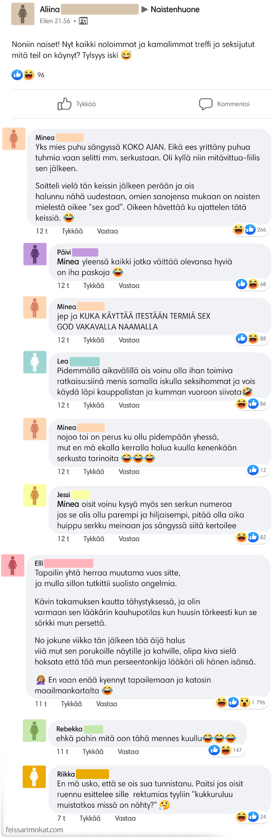 Aliina halusi, että Naistenhuoneen jäsenet kertoisivat kaikista noloimmista ja kamalimmista treffi & seksijutuista, joita heille on käynyt.