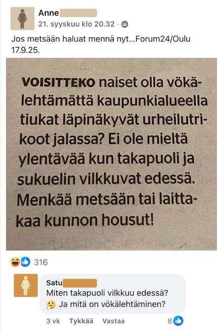 Feissarimokat: Naiset, se vökälehtäminen loppuu nyt!