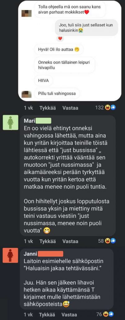 Älypuhelimet ja muut elektroniikkalaitteet käyttävät ”autocorrect” -ominaisuutta, joka korjaa tai arvaa sanat etukäteen puolestasi. Tekoäly toimiikin nykyään suurimmassa osassa tapauksista hyvin, mutta joskus syntyy noloja tilanteita.