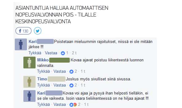 Myönnetään… Olen itsekin joskus raivonnut 60km/h rajoitusta alueella, jossa olisi voinut ihan hyvin painaa menemään 80km/h vauhdilla. Ongelma ei ole kuitenkaan niin suuri, että jaksaisin raivota siitä sosiaalisessa mediassa.