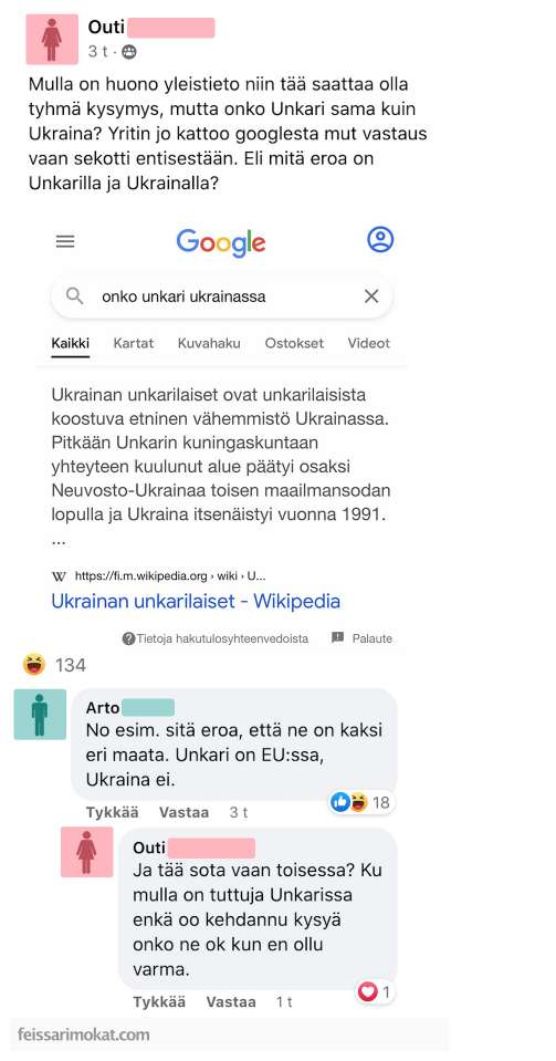 Feissarimokat: onko Unkari Ukrainassa? Suomalaisnainen kysyy neuvoja ystäviltään
