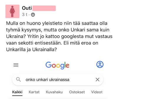 Outi kysyi Facebookissa sijaitseeko Unkari Ukrainassa – kysymys on melko outo, jos ottaa huomioon maailman tämän hetkiset tapahtumat.