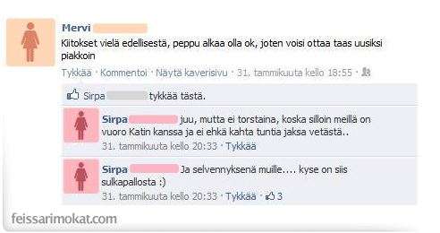 - Feissarimokat: Peppu alkaa olla ok – voisi ottaa uusiksi piakkoin
