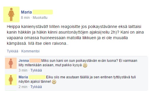 Feissarimokat: poikaystävän ex-tyttöystävä huolehtii kanista – uusi tyttöystävä raivostuu