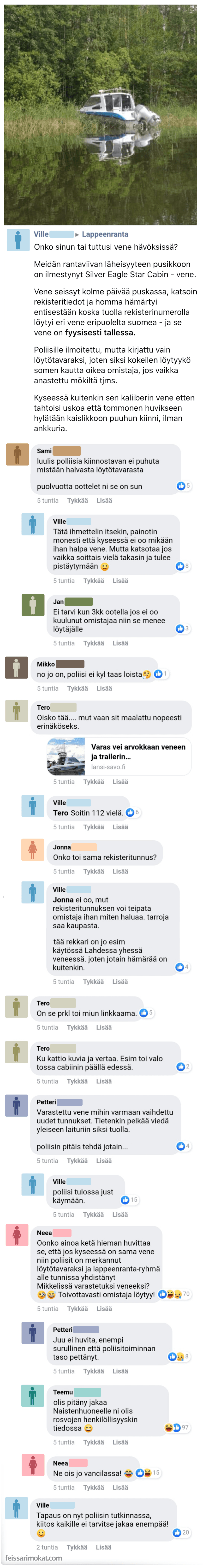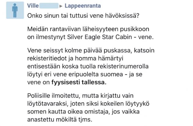 Poliisin toimintaan kriittisesti suhtautunut Ville päätti alkaa selvittämään tapausta sosiaalisessa mediassa, sillä kukaan ei mitä todennäköisimmin jättäisi näin arvokasta venettä oman onnensa nojaan ellei se olisi varastettu.
