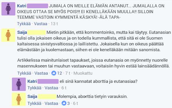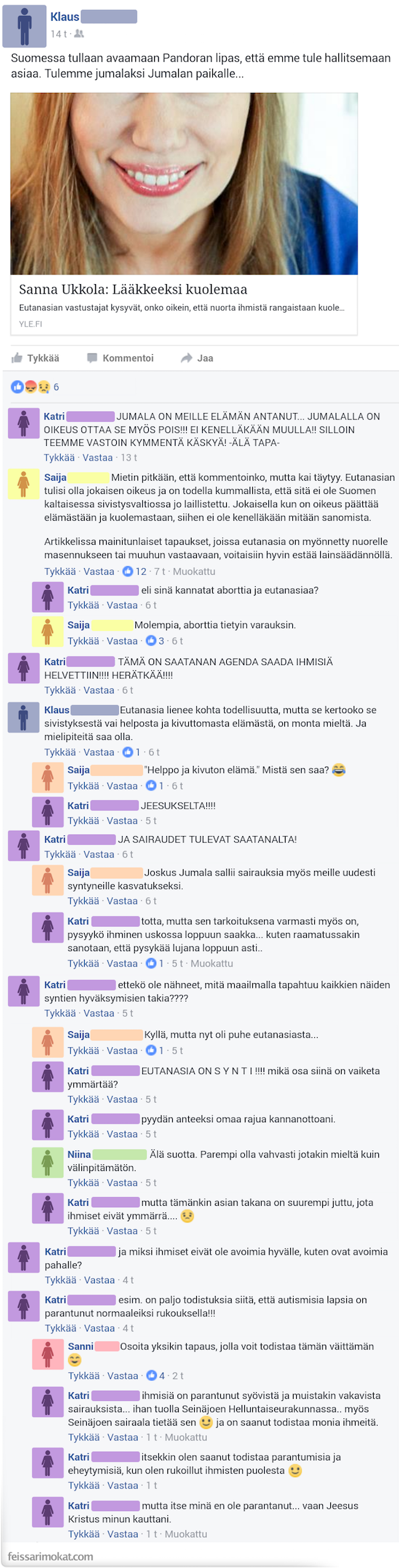 Feissarimokat: Puolesta ja vastaan keskustelua eutanasiasta – ”autismin voi hoitaa rukouksilla ”