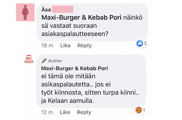 Maxi-Burger & Kebab Pori on ollut aiemminkin Feissarimokien etusivulla erikoisen asiakaspalvelun vuoksi.