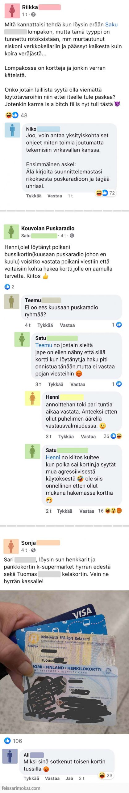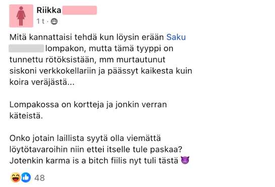Jos joku esimerkiksi varastaa sinulta tai tutultasi tavaraa niin kostotoimenpiteestä ei kannata ilmoittaa julkisesti Facebookissa.