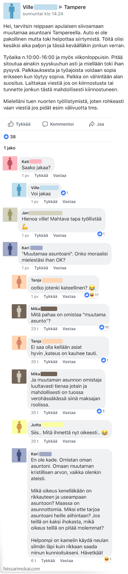 - Feissarimokat: Kuuluuko Facebook vuokraan?