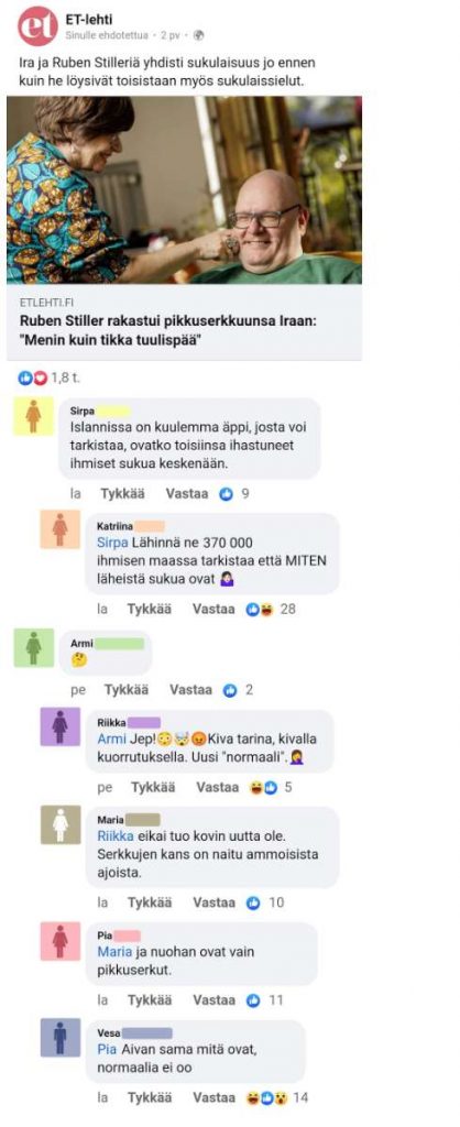 Artikkeli herätti Facebookissa kohinaa ja osan mielestä uutinen oltiin tuotu esille ”normaalina” käytöksenä. Ihmisten mielestä pikkuserkun naiminen ei kuitenkaan ole lainkaan normaalia.