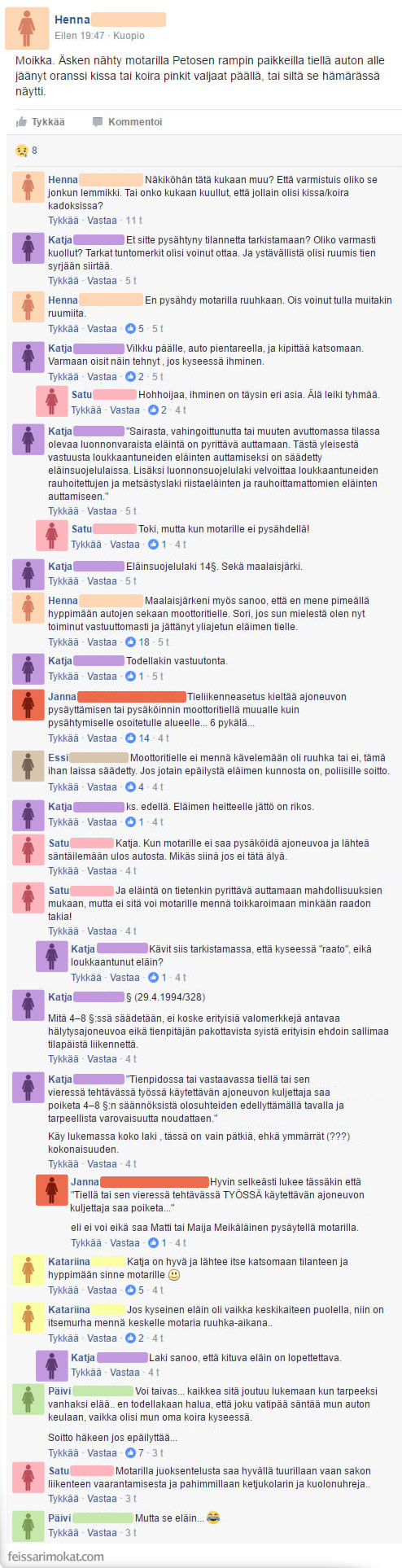Feissarimokat: ”Ruumis moottoritiellä” – kiivasta keskustelua siitä, miten tulisi toimia