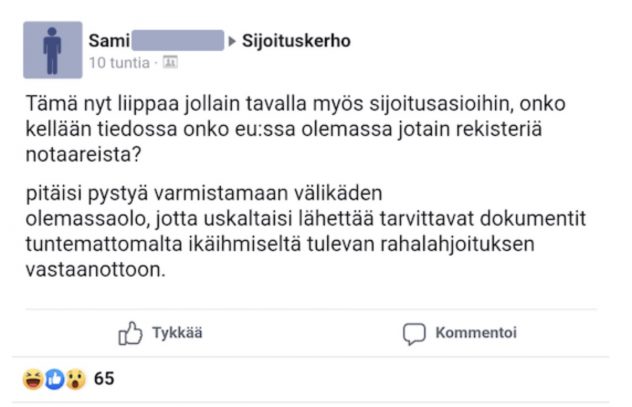 Jokainen suomalainen on joskus saanut Facebookissa tai sähköpostitse yhteydenoton henkilöltä, joka haluaa lahjoittaa rahaa JUURI SINULLE. Minun ei luultavasti tarvitse kertoa, että tällaiset viestit ovat 99,999999999% varmuudella huijauksia.