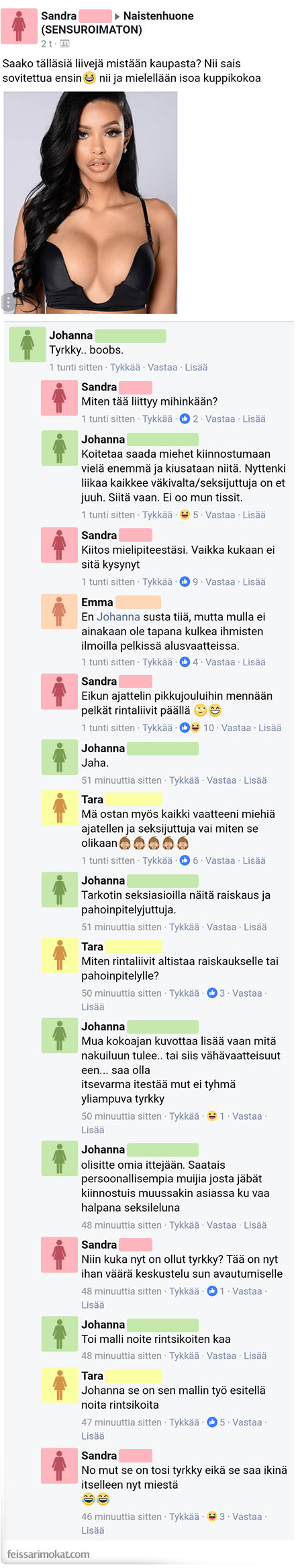 Rintaliivit kuumensivat tunteet naistenhuoneessa käydyssä keskustelussa.