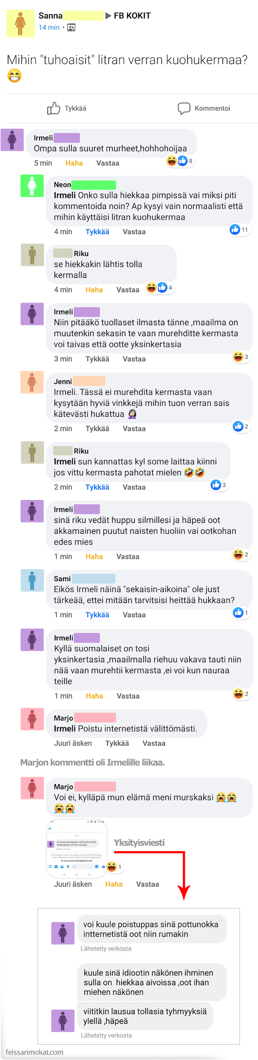 Feissarimokat: Sanna pyytää vinkkejä kerman käyttöön – Irmeli pahoittaa mielensä välinpitämättömyydestä