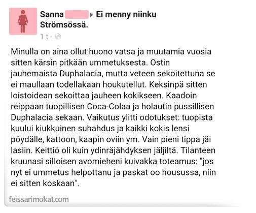 - Feissarimokat: Sannan ummetuslääke oli vähän liiankin tehokas