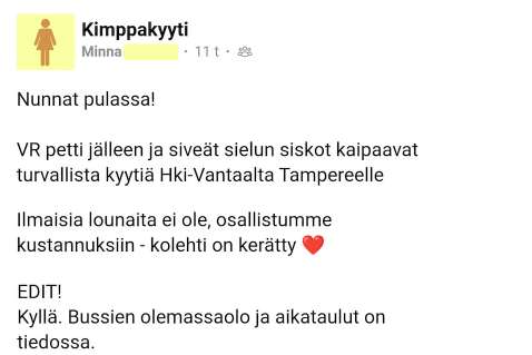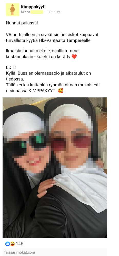 Feissarimokat: siveät nunnat joutuivat pulaan, kun VR petti – ”etsitään kyytiä Hki-Vantaalta Tampereelle”