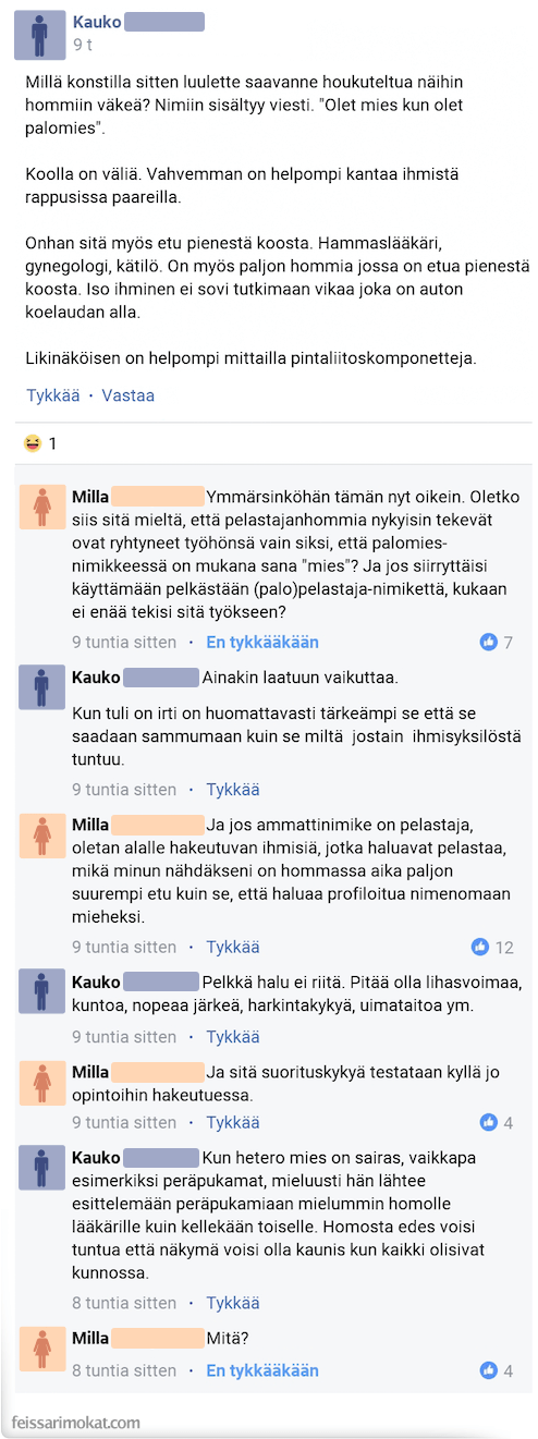 Feissarimokat: suomalaismiehen mielestä palomiehiä ei saa sanoa jatkossa palopelastajiksi