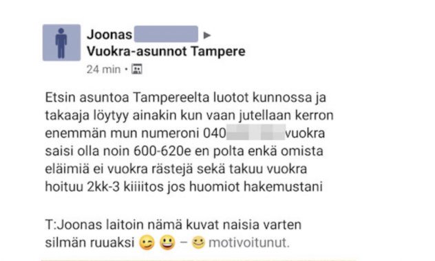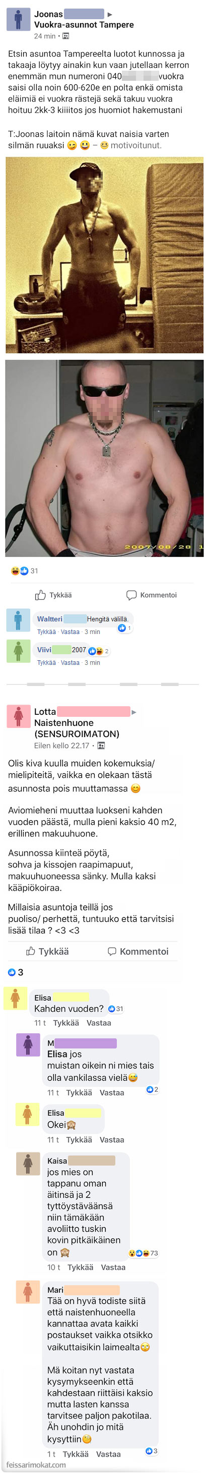 Feissarimokat: suomalaismies haluaa asunnon – julkaisi kyseenalaisia kuvia itsestään