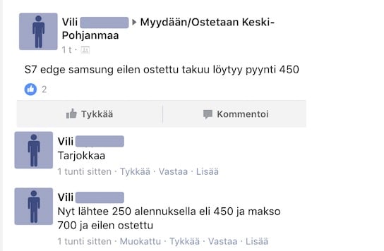 Miksi ostaisit puhelimen 700 eurolla ja myisit sen seuraavana päivänä 450 eurolla? Miksi käyttäytyisit aggressiivisesti, jos puhelin olisi rehellisin keinoin hankittu? Miksi haukkuisit ihmisiä, jotka kysyvät lisää tuotteesta? — Luultavasti siksi, että puhelin on varastettu tai ainakin vaikuttaisi olevan…
