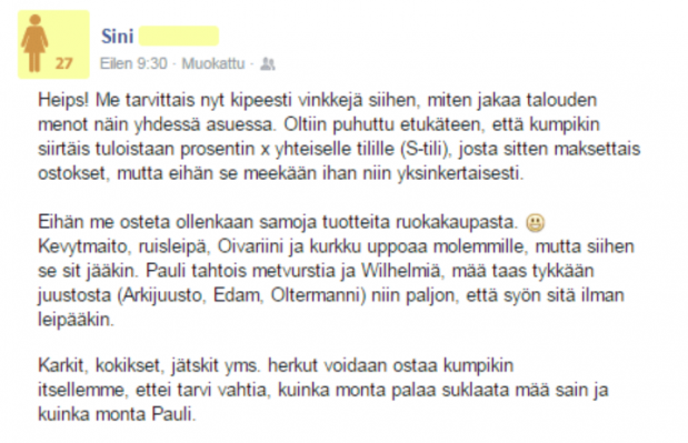 Rahankäyttö ei yksinkertaisesti voi olla näin vaikeaa, jos haluaa asua toisen ihmisen kanssa saman katon alla.