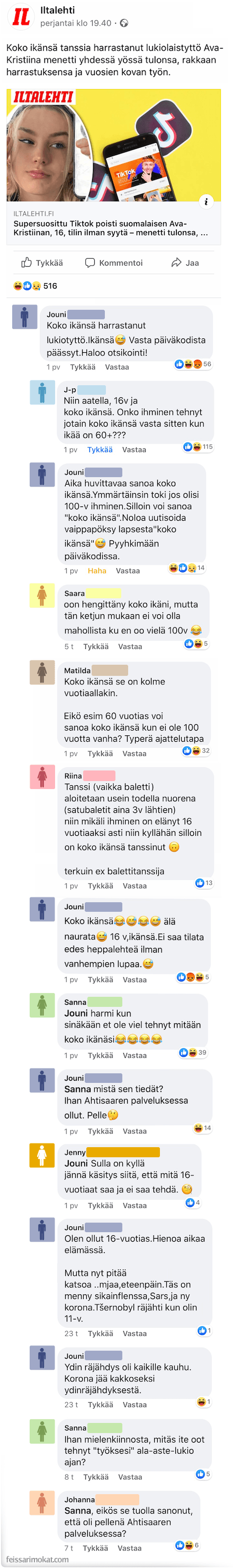 Kommentit keskittyivät ainoastaan ”koko ikänsä” -aiheeseen ja aikuiset ihmiset käyttäytyivät lapsellisemmin kuin esikoululainen.