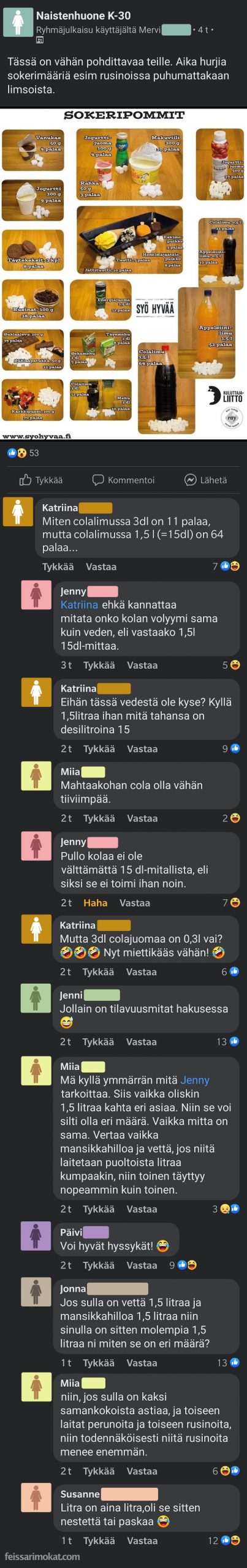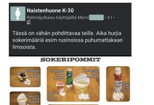 Mistä kaikki sitten alkoi? No, Mervi päätti julkaista kuvat ruoista ja juomista, jotka sisältävät runsaasti sokeria. Katriina kuitenkin huomasi, että 0,3 desilitran colalimun sokerimäärä ei vastannut 1,5 litran colalimun sokerimäärää.