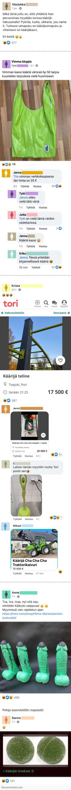 Käärijä oli takuulla viime viikon puhutuin aihe niin Suomessa kuin monessa muussakin maassa. Suomalaiset veivät villityksen kuitenkin seuraavalle tasolle, sillä Tori.fi täyttyi ilmoituksista, joissa vihreää väriä sisältävät tuotteet nimettiin ”Käärijä” -etuliitteellä.