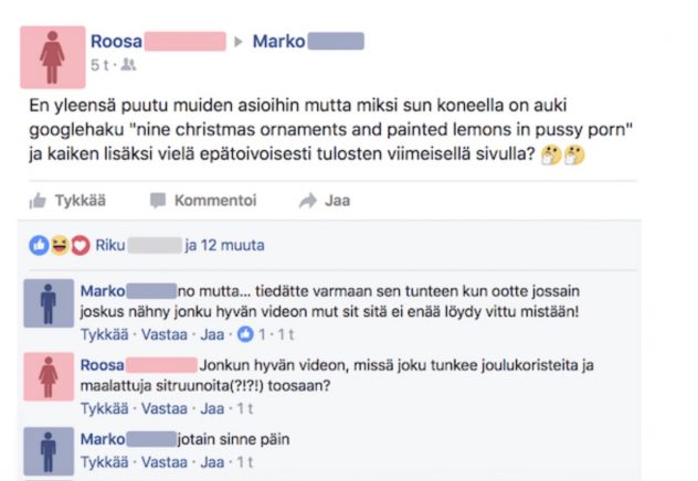 Feissarimokat: tyttöystävä sai miehensä kiinni – Googlesta oltiin haettu härskejä